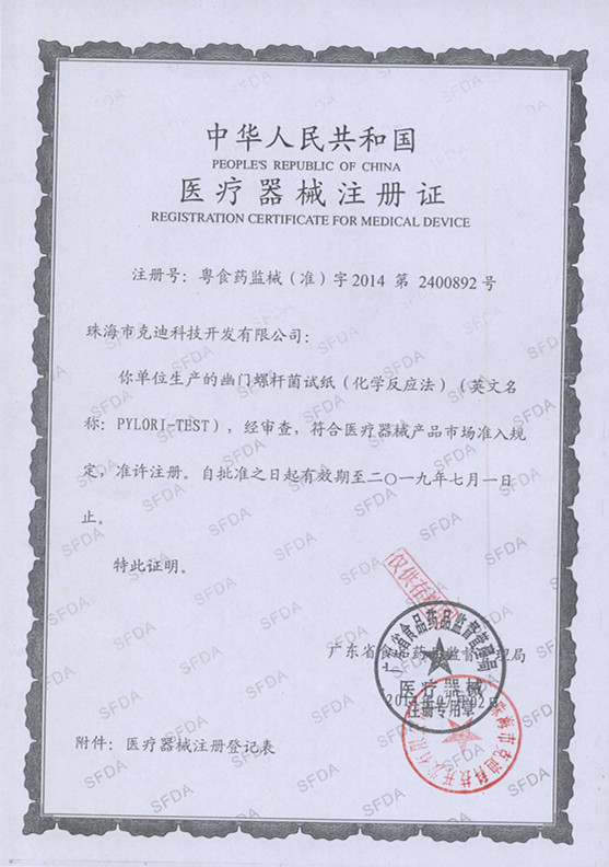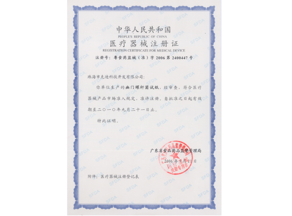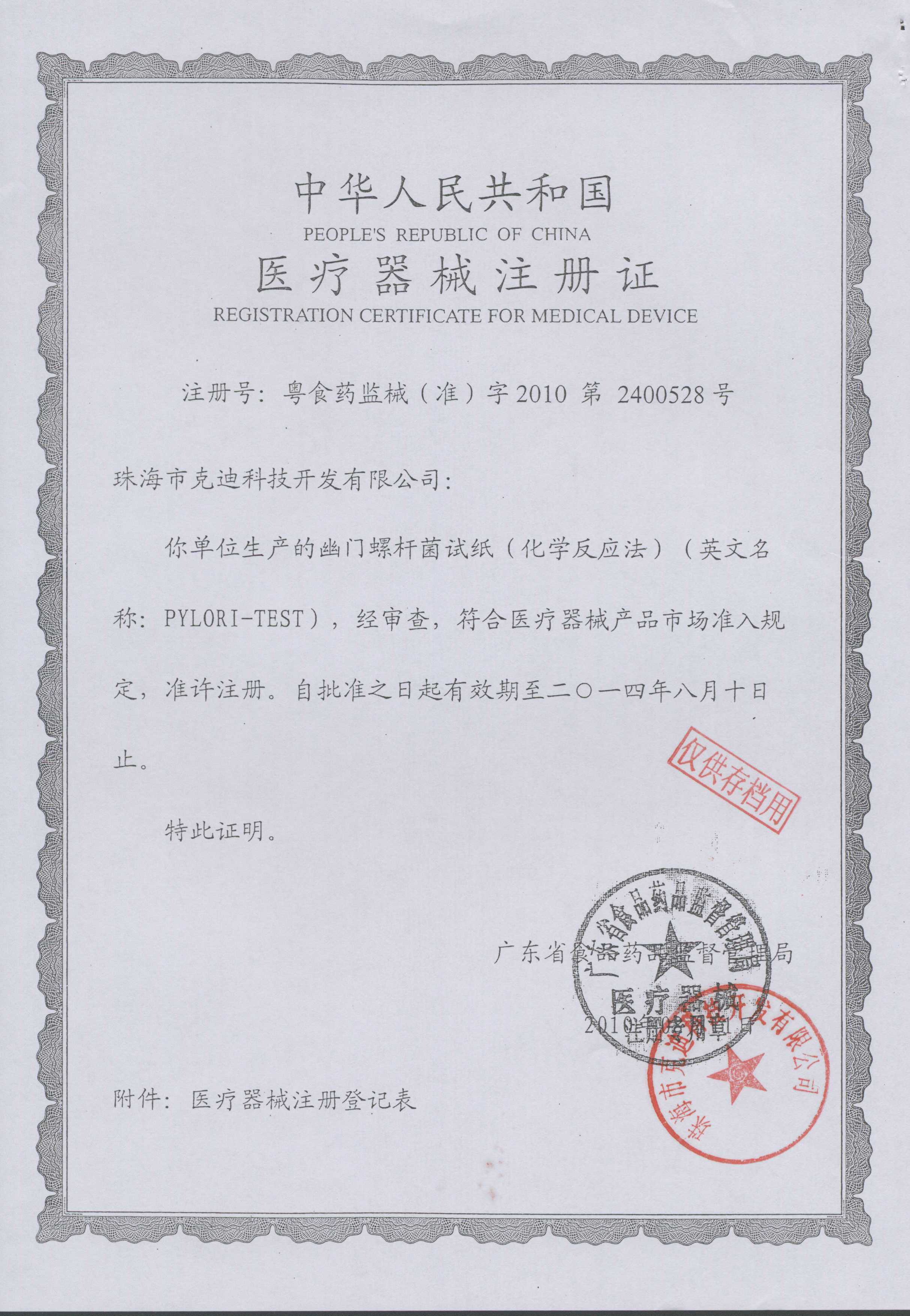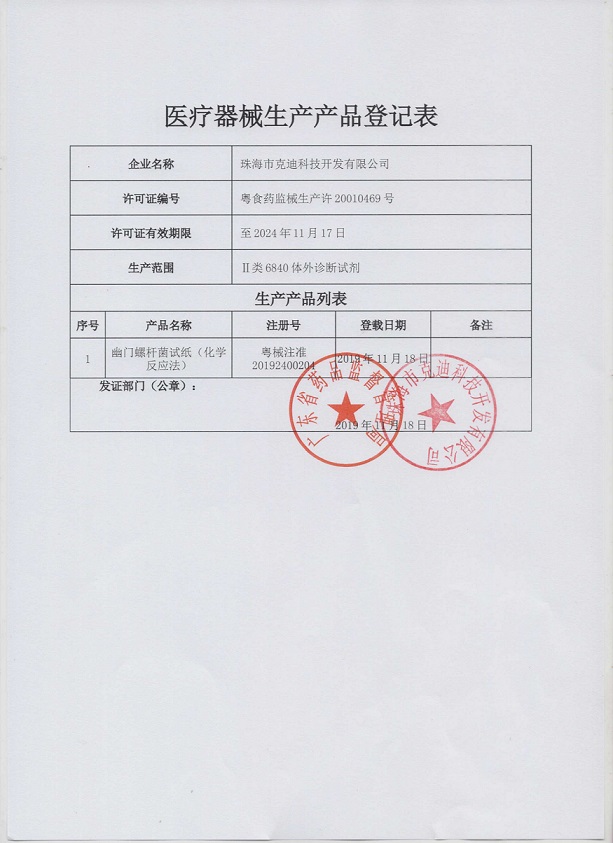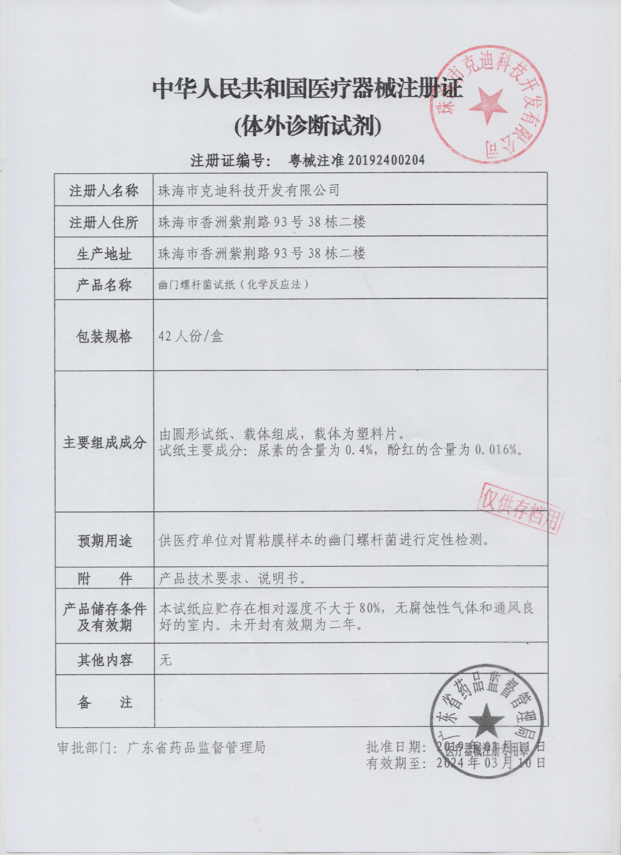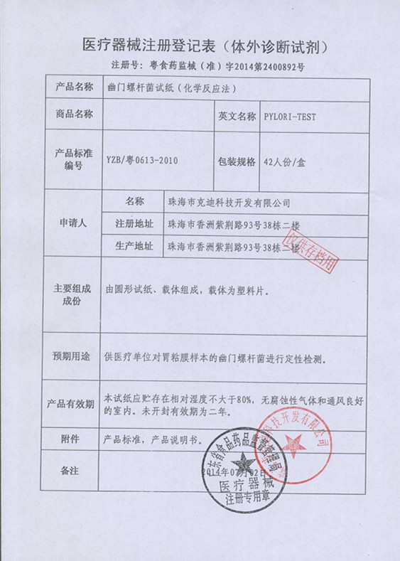 注册证变更文件(牙垢检测幽门螺杆菌)