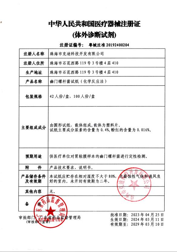 幽门螺杆菌试纸(化学反应法)