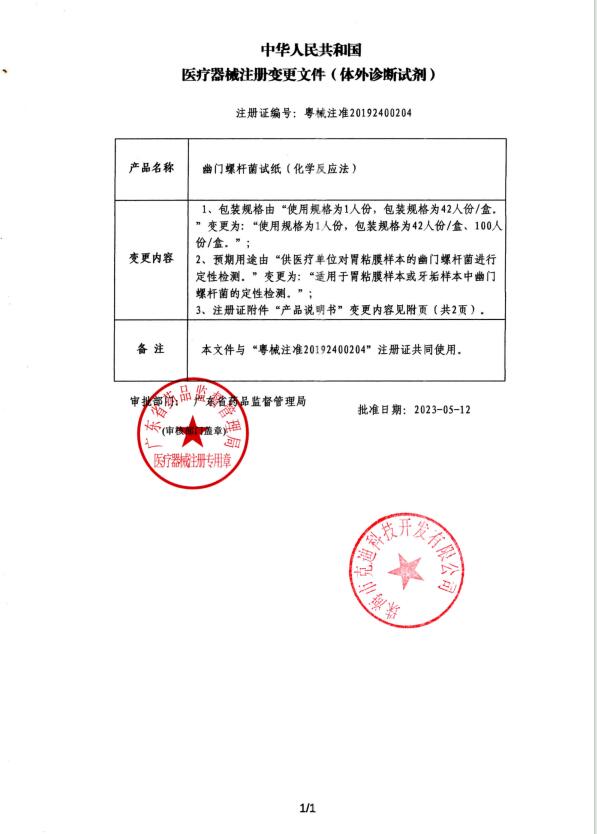 该产品是在我公司原有“幽门螺杆菌试纸(化学反应法)”...